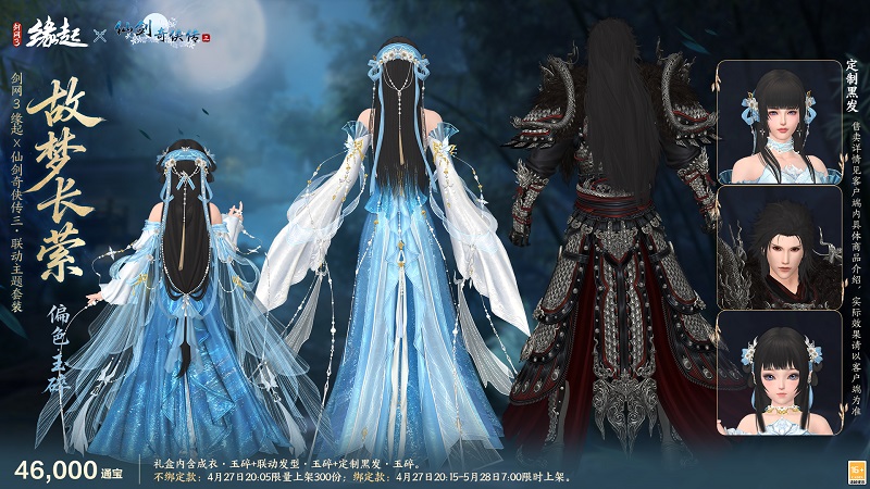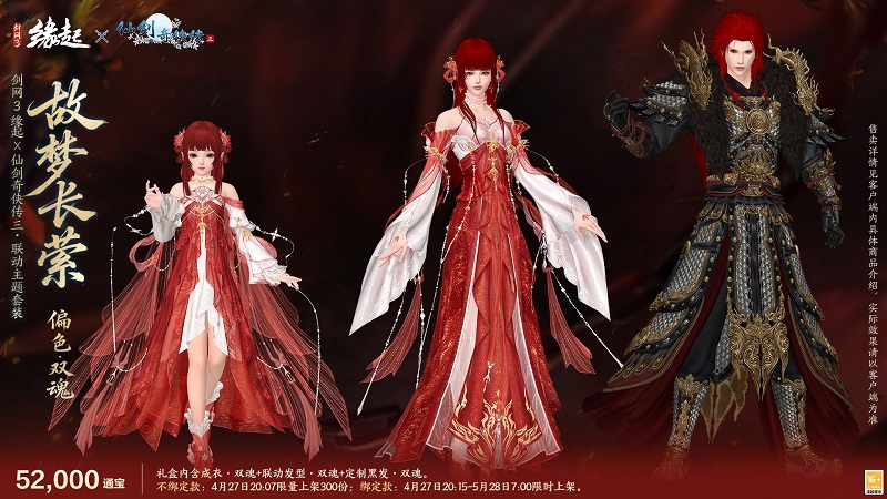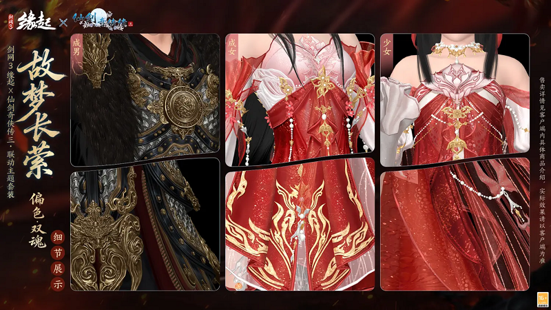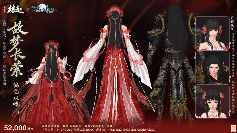 大梦初醒,难遣流年,全新联动套装「故梦长萦」,以《仙剑奇侠传三》魔界至尊重楼、姜国公主龙葵为灵感衍生创作,将角色经典风骨与盛唐华裳深度相融,特设两款专属偏色复刻角色神韵,让仙剑旧梦于大唐江湖再绽风华。