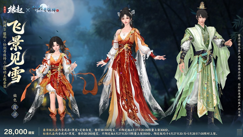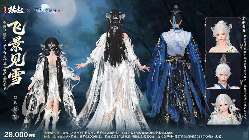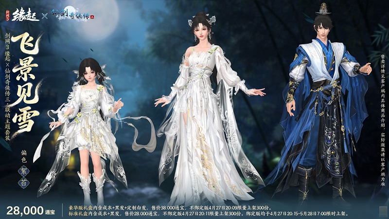 人间情痴,缘聚有时。本次联动套装「飞景见雪」,以《仙剑奇侠传三》中重情重义的少年侠士景天、灵动明媚的唐家大小姐唐雪见为设计灵感衍生创作,将角色性格特质与盛唐服饰的飘逸形制相融,特设两款专属偏色复刻角色经典神韵,让仙剑里的人间烟火与江湖意气,于大唐江湖完美重现。
