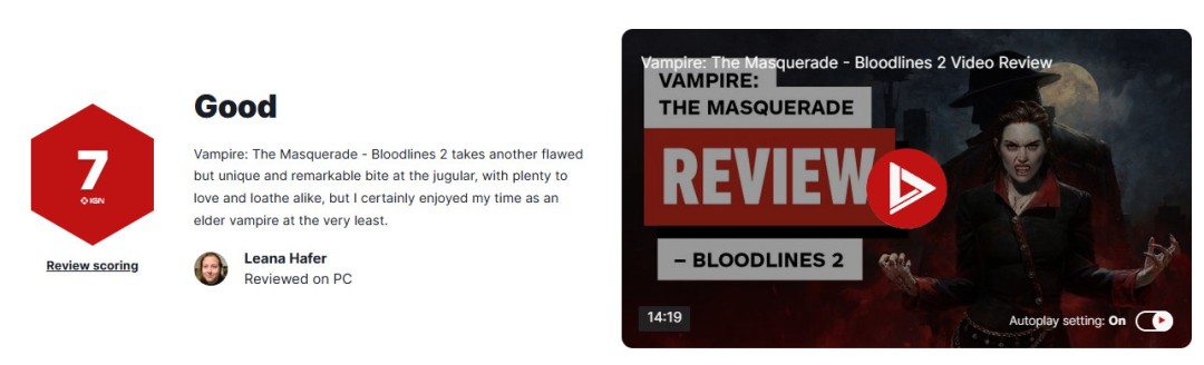 《吸血鬼:避世血族2》IGN 7分 令人又爱又恨